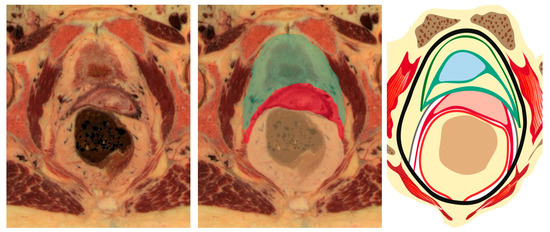 - Fritsch, H.; Hötzinger, H. Tomographical anatomy of the pelvis, visceral pelvic connective tissue, and its compartments. Clin. Anat. 1995, 8, 17–24. [Google Scholar] [CrossRef] [PubMed]