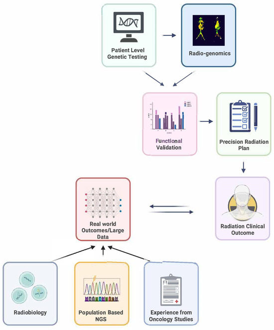 In the last decade, the increased availability and rapid integration of genetic testing have revolutionized the landscape of cancer care, particularly in the management of patients with advanced and metastatic malignancies. It has paved the way for the development of personalized treatment recommendations by utilizing mutation profiles to target specific underlying molecular drivers of a tumor [1]. Despite the progress that has been made in our understanding of cancer genetics, the field of radiation oncology has lagged behind medical oncology in incorporating specific genetic information in formulating our decisions surrounding radiation treatment (RT). Even though the field has dramatically advanced in treatment delivery and planning techniques, RT is still largely prescribed today as it has been carried out for many decades, based on tumor size, disease type, histology, surgical margin status, disease stage, and proximity to normal anatomical structures [1,2].