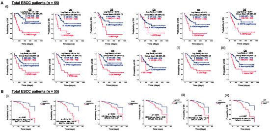 Correlation of CTC marker expression at baseline with OS in ESCC patients (n = 55). (A) Kaplan–Meier survival analysis of OS with CTC gene expression at baseline in ESCC patients (n = 55). Gene expression stratification into two groups, (i) 0, 1: negative/low and high gene expression; (ii) 0, 1: CTC-negative/low and CTC-high; (iii) 0, 1: non-hybrid and hybrid EMT CTC. (B) Cox regression survival analysis of OS with CTC gene expression at baseline in ESCC patients (n = 55). Gene expression stratification into two groups, (i) 0, 1: negative/low and high gene expression; (ii) 0, 1: CTC-negative/low and CTC-high; (iii) 0, 1: non-hybrid and hybrid EMT CTC.3.5. Functional Role of TWIST1 in ESCC Metastatic Progression.