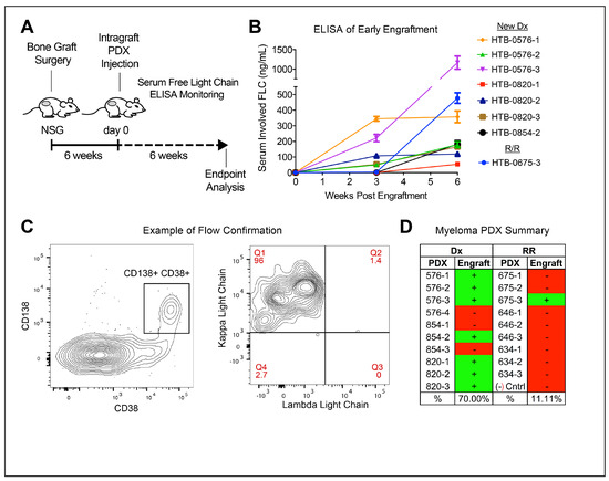 - Das, R.; Strowig, T.; Verma, R.; Koduru, S.; Hafemann, A.; Hopf, S.; Kocoglu, M.H.; Borsotti, C.; Zhang, L.; Branagan, A.; et al. Microenvironment-dependent growth of preneoplastic and malignant plasma cells in humanized mice. Nat. Med. 2016, 22, 1351–1357. [Google Scholar] [CrossRef]