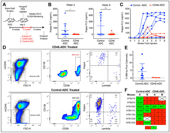 3.3. CD46–ADC Prevents the Engraftment of MM PDX