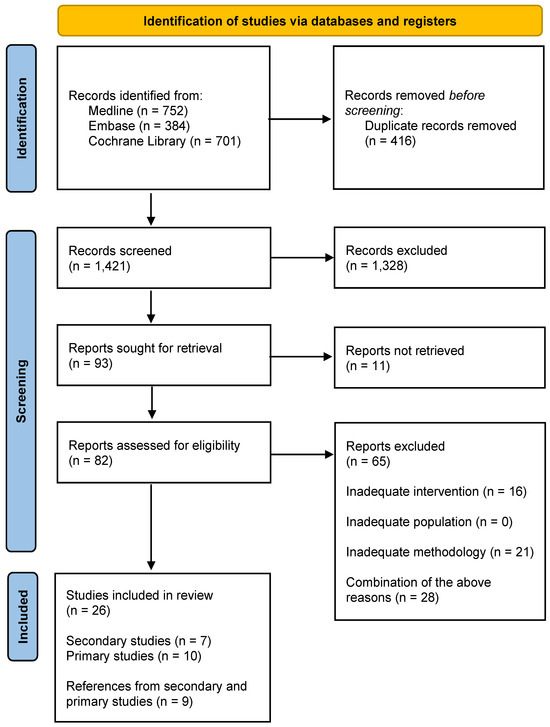 - Higgins, J.P.T.; Thomas, J.; Chandler, J.; Cumpston, M.; Li, T.; Page, M.; Welch, V. Cochrane Handbook for Systematic Reviews of Interventions; Version 6.2; The Cochrane Collaboration in London: London, UK, 2021. [Google Scholar]