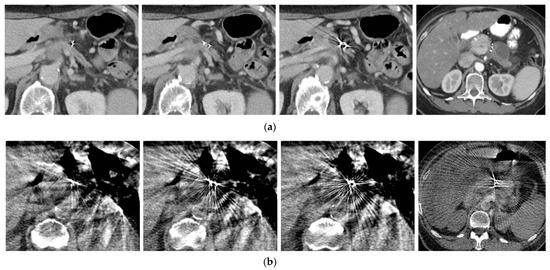 - Park, W.G.; Yan, B.M.; Schellenberg, D.; Kim, J.; Chang, D.T.; Koong, A.; Patalano, C.; Van Dam, J. EUS-guided gold fiducial insertion for image-guided radiation therapy of pancreatic cancer: 50 successful cases without fluoroscopy. Gastrointest. Endosc. 2010, 71, 513–518. [Google Scholar] [CrossRef]