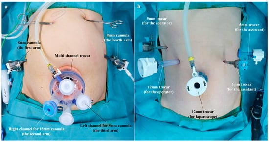 - Hasson, H.M. A modified instrument and method for laparoscopy. Am. J. Obstet. Gynecol. 1971, 110, 886–887. [Google Scholar] [CrossRef]
