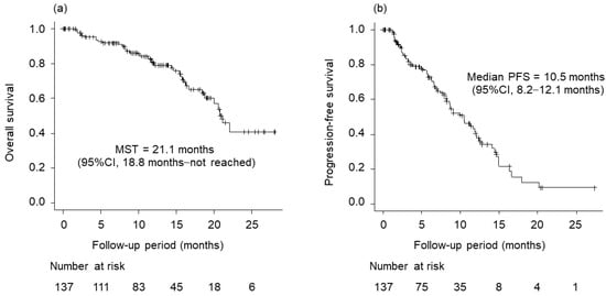 3.1. Patients’ Background Characteristics and Outcomes from the Beginning of Atezolizumab Plus Bevacizumab