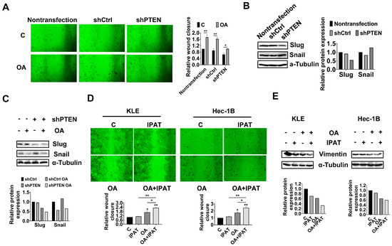 Figure S8). Loss of PTEN attenuated the effects of OA on the expression of Snail and Slug (