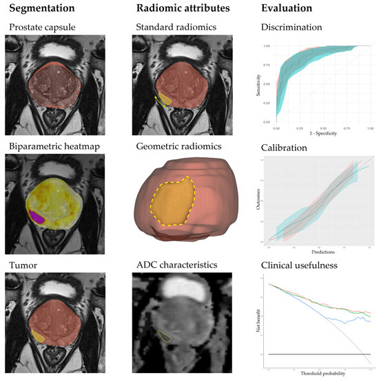 Recent studies [9,10,11,12] have explored radiomics-based artificial intelligence (AI) algorithms on prostate MRI and these showed promising results for EPE prediction at the prostate and prostate lobe levels. While many existing predictive models have relied on radiomics generated from manual segmentations of the prostate and lesions, we employed a semi-automated approach to generate geometric- and intensity-based radiomics for our predictive model. The aim of this study was to establish and validate a comprehensive AI-driven approach with innovative MRI radiomics and clinical variables for lesion-specific EPE predictions.