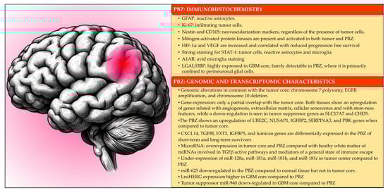 - If some data on the PBZ can suggest the influence on the features of this area of tumor cells migrated well beyond the tumor border, diluted in brain parenchyma, and possibly having a “dormant” feature and therefore liable to be missed by pathological examination, others suggest the recruitment of surrounding cells reprogrammed towards a neoplastic phenotype.