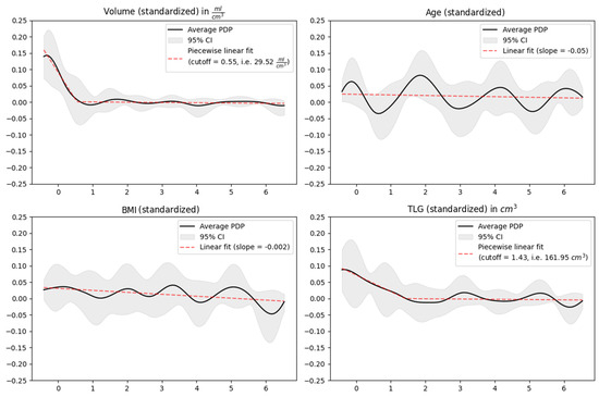 - Metabolic features: SUVmax, SUVmean, metabolic tumor volume (MTV), and total lesion glycolysis (TLG)