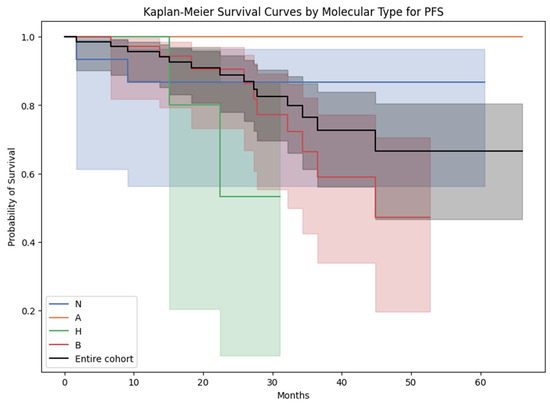 | B = Luminal B | 36 (51.4%) | 26 (47.3%) | 10 (66.7%) | |