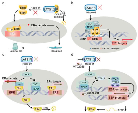 - Zhu, C.; Li, L.; Zhang, Z.; Bi, M.; Wang, H.; Su, W.; Hernandez, K.; Liu, P.; Chen, J.; Chen, M.; et al. A Non-canonical Role of YAP/TEAD Is Required for Activation of Estrogen-Regulated Enhancers in Breast Cancer. Mol. Cell 2019, 75, 791–806.e798. [Google Scholar] [CrossRef]