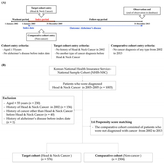 Therefore, we examined the incidence and potential risk of Alzheimer’s disease in patients with HNC using a nationally representative cohort dataset. This dataset includes all types of diseases based on the nationwide population; thus, we identified a possible link between two specific diseases. We also controlled for suspected confounders, such as clinical status and demographic conditions.