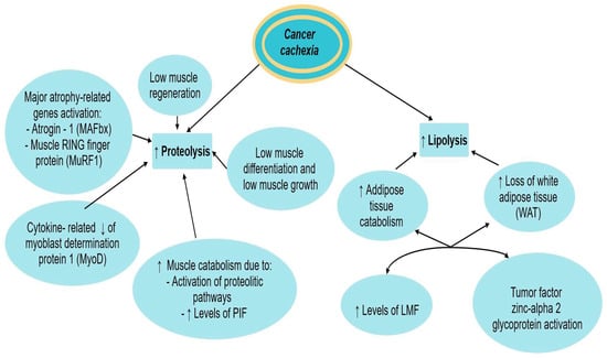 The involvement of both lipolysis and proteolysis in the development of cancer cachexia has been described in Figure 2.