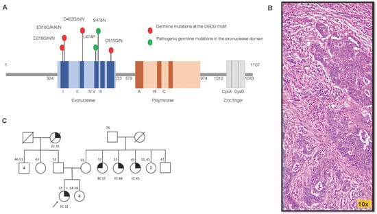 - Bellido, F.; Pineda, M.; Aiza, G.; Valdés-Mas, R.; Navarro, M.; Puente, D.A.; Pons, T.; González, S.; Iglesias, S.; Darder, E.; et al. POLE and POLD1 mutations in 529 kindred with familial colorectal cancer and/or polyposis: Review of reported cases and recommendations for genetic testing and surveillance. Genet. Med. 2016, 18, 325–332. [Google Scholar] [CrossRef]