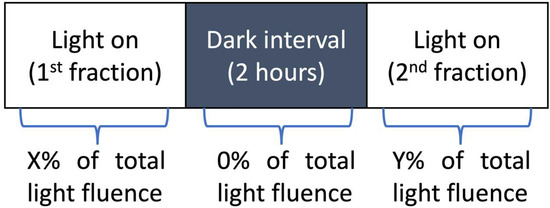 The general treatment plan design for fractionated treatment scheme. The values of X and Y are dependent on the specific treatment scheme. These values are controlled by varying the light fraction length, i.e., the illumination time of each light fraction.