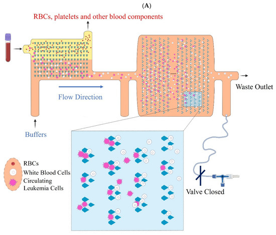 - Jackson, J.M.; Taylor, J.B.; Witek, M.A.; Hunsucker, S.A.; Waugh, J.P.; Fedoriw, Y.; Shea, T.C.; Soper, S.A.; Armistead, P.M. Microfluidics for the Detection of Minimal Residual Disease in Acute Myeloid Leukemia Patients Using Circulating Leukemic Cells Selected from Blood. Analyst 2016, 141, 640–651. [Google Scholar] [CrossRef]