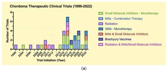 (a)Therapeutic clinical trials for chordoma (1999–2022). (b) Observational clinical trials for chordoma (1999–2022).