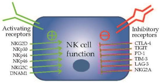 - Moretta, L.; Moretta, A. Unravelling natural killer cell function: Triggering and inhibitory human nk receptors. EMBO J. 2004, 23, 255–259. [Google Scholar] [CrossRef] [PubMed]
