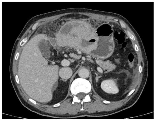 - Kim, H.C.; Lee, J.M.; Kim, K.W.; Park, S.H.; Kim, S.H.; Lee, J.Y.; Han, J.K.; Choi, B.I. Gastrointestinal stromal tumors of the stomach: CT findings and prediction of malignancy. AJR Am. J. Roentgenol. 2004, 183, 893–898. [Google Scholar] [CrossRef] [PubMed]