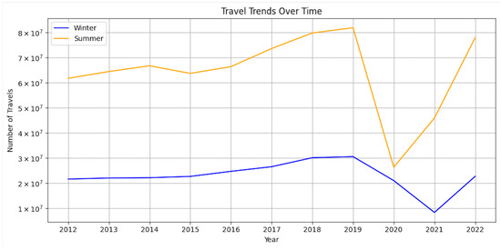 Non-business-purpose trips of EU residents (EU-27) to other foreign countries in summer (June, July, August) and winter (December, January, February) months. Minimum duration of vacation 4 nights and over [46].