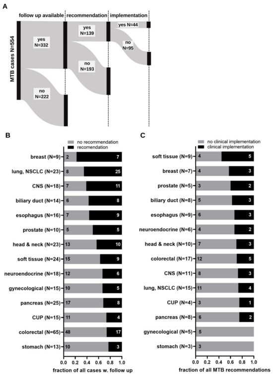 Chicago/Turabian StyleTögel, Lars, Christoph Schubart, Sebastian Lettmaier, Clemens Neufert, Juliane Hoyer, Kerstin Wolff, Evgeny A Moskalev, Robert Stöhr, Abbas Agaimy, André Reis, and et al. 2023. "Determinants Affecting the Clinical Implementation of a Molecularly Informed Molecular Tumor Board Recommendation: Experience from a Tertiary Cancer Center" Cancers 15, no. 24: 5892. https://doi.org/10.3390/cancers15245892