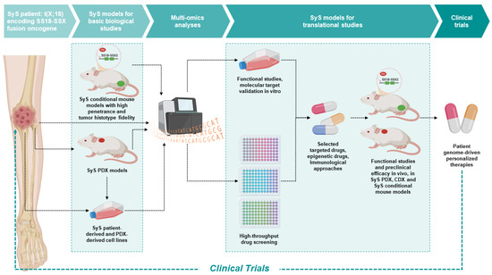 Landuzzi, L.; Ruzzi, F.; Lollini, P.-L.; Scotlandi, K. Synovial Sarcoma Preclinical Modeling: Integrating Transgenic Mouse Models and Patient-Derived Models for Translational Research. Cancers 2023, 15, 588. https://doi.org/10.3390/cancers15030588