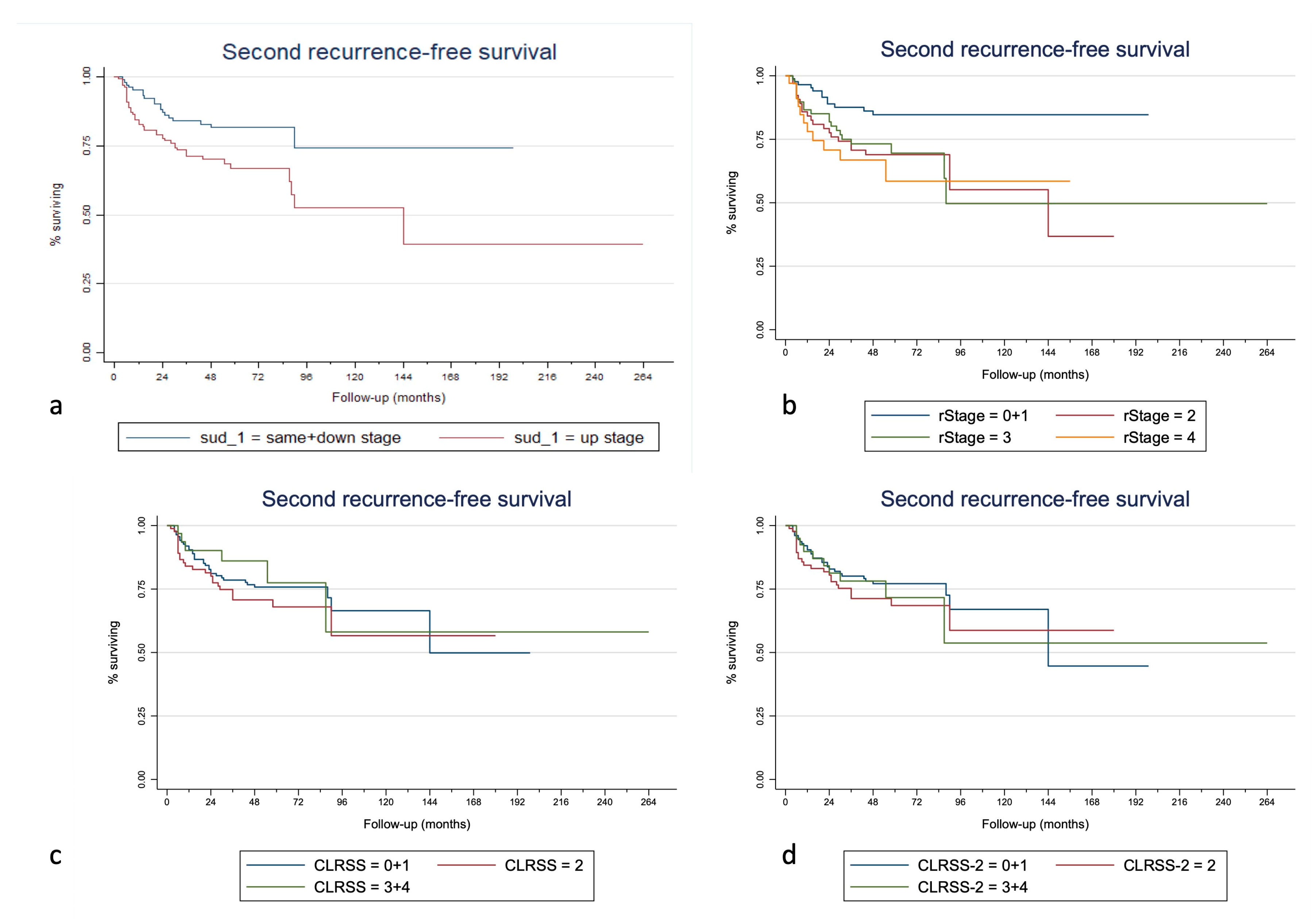 | Variable | Overall Survival | Second Recurrence-Free Survival | Disease-Specific Survival | |||||||||||||