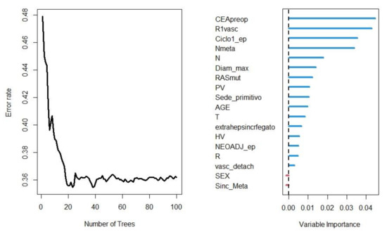 Error rates per each forest and the variables’ importance and the relative coefficient, obtained after the Random-Forest analysis.