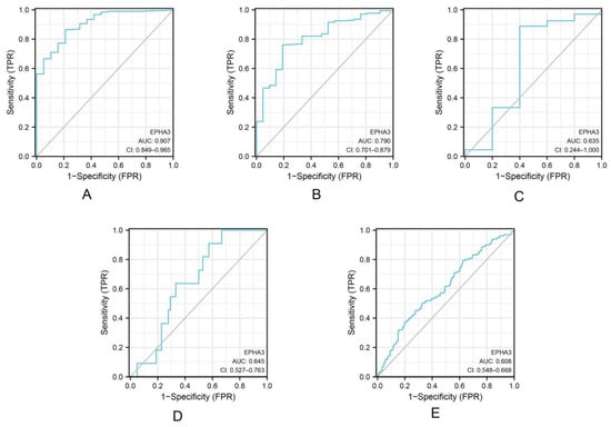 APA StyleLiu, J., Zhou, Z., Jiang, Y., Lin, Y., Yang, Y., Tian, C., Liu, J., Lin, H., & Huang, B. (2023). EPHA3 Could Be a Novel Prognosis Biomarker and Correlates with Immune Infiltrates in Bladder Cancer. Cancers, 15(3), 621. https://doi.org/10.3390/cancers15030621