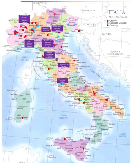 - Noale, M.; Maggi, S.; Artibani, W.; Bassi, P.F.; Bertoni, F.; Bracarda, S.; Conti, G.N.; Corvò, R.; Gacci, M.; Graziotti, P.; et al. Pros-IT CNR: An Italian prostate cancer monitoring project. Aging Clin. Exp. Res. 2017, 29, 165–172. [Google Scholar] [CrossRef] [PubMed]