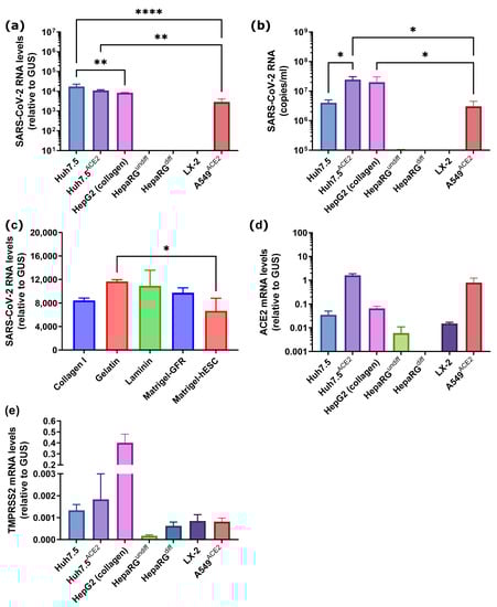 3.2. SARS-CoV-2 Infects Liver Hepatoma but Not Non-Transformed Hepatocyte-like Cells