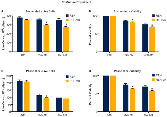 - Rellick, S.L.; Hu, G.; Piktel, D.; Martin, K.H.; Geldenhuys, W.J.; Nair, R.R.; Gibson, L.F. Co-culture model of B-cell acute lymphoblastic leukemia recapitulates a transcription signature of chemotherapy-refractory minimal residual disease. Sci. Rep. 2021, 11, 15840. [Google Scholar] [CrossRef]