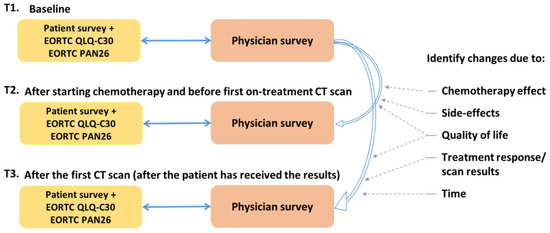 Patients were invited to complete the study survey and QLQ-C30/PAN26, at three time points (Figure 1):
