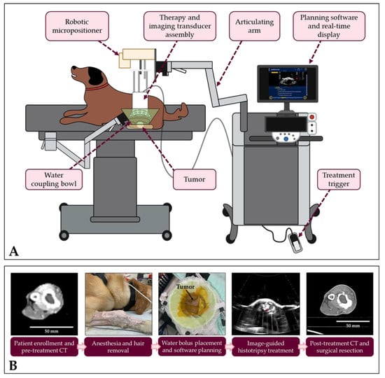 - Ruger, L.; Yang, E.; Gannon, J.; Sheppard, H.; Coutermarsh-Ott, S.; Ziemlewicz, T.J.; Dervisis, N.; Allen, I.C.; Daniel, G.B.; Tuohy, J.; et al. Mechanical High-Intensity Focused Ultrasound (Histotripsy) in Dogs with Spontaneously Occurring Soft Tissue Sarcomas. IEEE Trans. Biomed. Eng. 2022. [Google Scholar] [CrossRef] [PubMed]