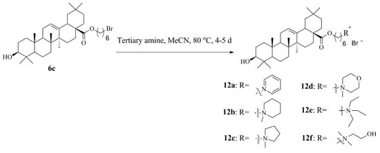 12f with different tertiary amines is similar to the previous method for the synthesis of ionic compounds (ICs) with triterpenoids covalently linked to the