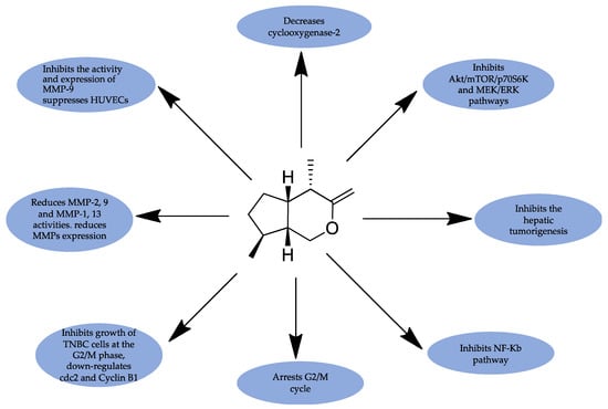 A study on Jatamanvaltrate p (69) demonstrated that the compound reduced the cell viability of breast cancer cells with no toxicity in a concentration-dependent manner, inducing apoptosis and cell cycle arrest. In vivo, Jatamanvaltrate p (69) was administered at a dose of 15 mg/kg in mice, where a significant reduction in cancer with no toxicity was noted, with 49.7% inhibition [89].