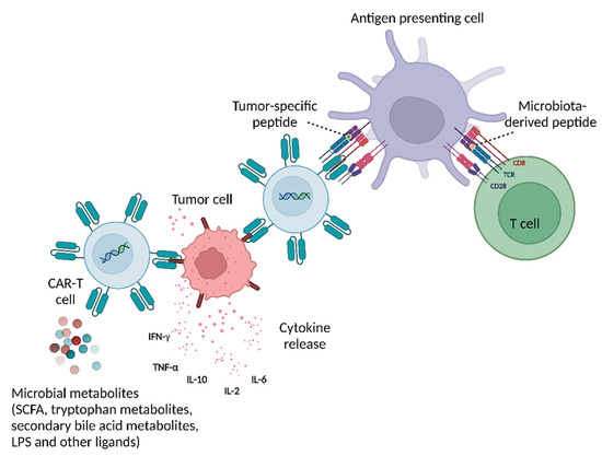 Asokan S, Cullin N, Stein-Thoeringer CK, Elinav E. CAR-T Cell Therapy and the Gut Microbiota. Cancers. 2023; 15(3):794. https://doi.org/10.3390/cancers15030794
