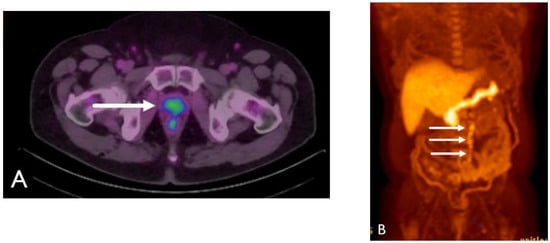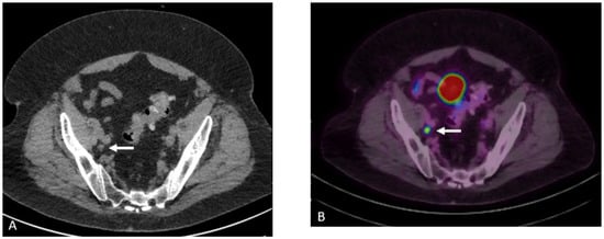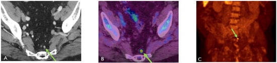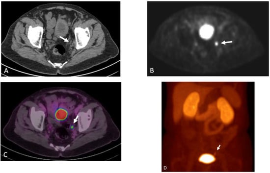 - Barbosa, F.G.; Queiroz, M.A.; Nunes, R.F.; Viana, P.C.C.; Marin, J.F.G.; Cerri, G.G.; Buchpiguel, C.A. Revisiting Prostate Cancer Recurrence with PSMA PET: Atlas of Typical and Atypical Patterns of Spread. Radiographics 2019, 39, 186–212. [Google Scholar] [CrossRef]