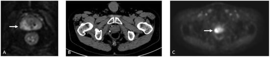- Giesel, F.L.; Sterzing, F.; Schlemmer, H.P.; Holland-Letz, T.; Mier, W.; Rius, M.; Afshar-Oromieh, A.; Kopka, K.; Debus, J.; Haberkorn, U.; et al. Intra-individual comparison of 68Ga-PSMA-11-PET/CT and multi-parametric MR for imaging of primary prostate cancer. Eur. J. Nucl. Med. Mol. Imaging 2016, 43, 1400–1406. [Google Scholar] [CrossRef] [PubMed]