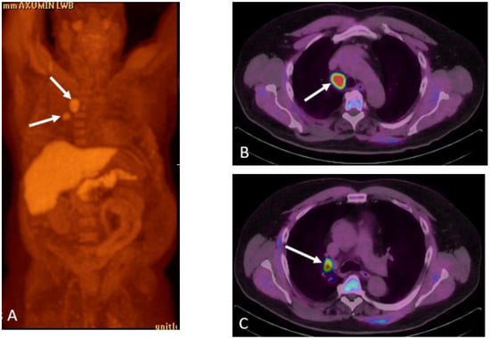 - Fallanca, F.; Picchio, M.; Spinapolice, E.G.; Ugolini, C.; Proietti, A.; Messa, C. Imaging of a thymoma incidentally detected by C-11 choline PET/CT. Clin. Nucl. Med. 2011, 36, 134–135. [Google Scholar] [CrossRef]