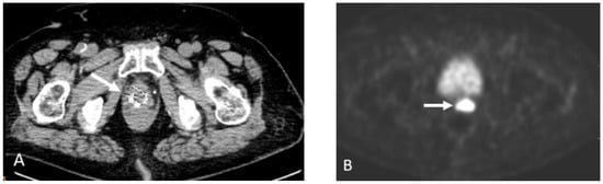 - Garzon, J.G.; Bassa, P.; Moragas, M.; Soler, M.; Riera, E. Incidental diagnosis of diffuse large B-cell lymphoma by 11C-choline PET/CT in a patient with biochemical recurrence of prostate cancer. Clin. Nucl. Med. 2014, 39, 742–743. [Google Scholar] [CrossRef]