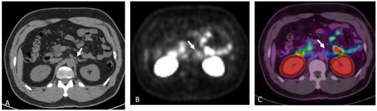 - Welle, C.L.; Cullen, E.L.; Peller, P.J.; Lowe, V.J.; Murphy, R.C.; Johnson, G.B.; Binkovitz, L.A. (1)(1)C-Choline PET/CT in Recurrent Prostate Cancer and Nonprostatic Neoplastic Processes. Radiographics 2016, 36, 279–292. [Google Scholar] [CrossRef]