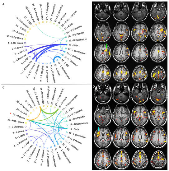 The fMRI and connectivity results for every patient and timepoint are reported in the Supplementary Material (Figures S1–S20).