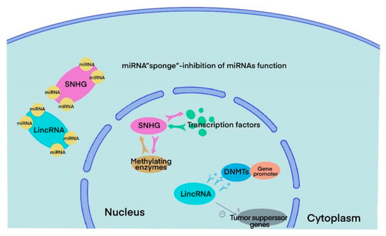 - Pasieka, R.; Zasoński, G.; Raczyńska, K.D. Role of Long Intergenic Noncoding RNAs in Cancers with an Overview of MicroRNA Binding. Mol. Diagn. Ther. 2022, 27, 29–47. [Google Scholar] [CrossRef]