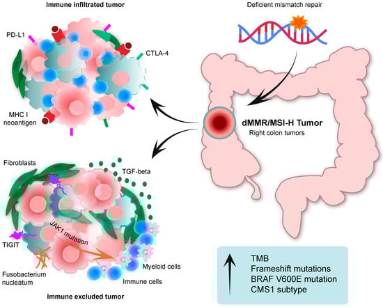 - Llosa, N.J.; Cruise, M.; Tam, A.; Wicks, E.C.; Hechenbleikner, E.M.; Taube, J.M.; Blosser, R.L.; Fan, H.; Wang, H.; Luber, B.S.; et al. The Vigorous Immune Microenvironment of Microsatellite Instable Colon Cancer Is Balanced by Multiple Counter-Inhibitory Checkpoints. Cancer Discov. 2015, 5, 43–51. [Google Scholar] [CrossRef]