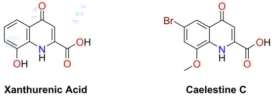 - Taleb, O.; Maammar, M.; Brumaru, D.; Bourguignon, J.-J.; Schmitt, M.; Klein, C.; Kemmel, V.; Maitre, M.; Mensah-Nyagan, A.G. Xanthurenic Acid Binds to Neuronal G-Protein-Coupled Receptors That Secondarily Activate Cationic Channels in the Cell Line NCB-20. PLoS ONE 2012, 7, e48553. [Google Scholar] [CrossRef]