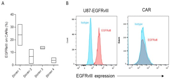 - Caruso, H.G.; Tanaka, R.; Liang, J.; Ling, X.; Sabbagh, A.; Henry, V.K.; Collier, T.L.; Heimberger, A.B. Shortened ex vivo manufacturing time of EGFRvIII-specific chimeric antigen receptor (CAR) T cells reduces immune exhaustion and enhances antiglioma therapeutic function. J. Neuro-Oncol. 2019, 145, 429–439. [Google Scholar] [CrossRef]