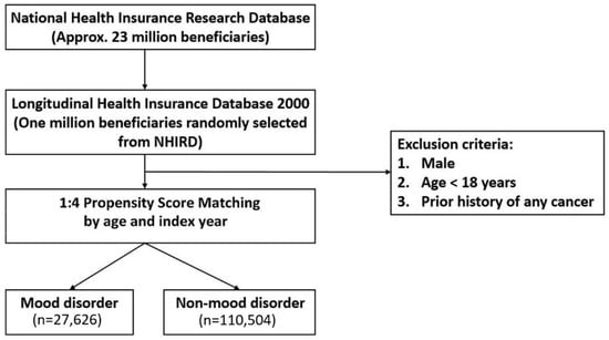 - Hung, Y.-N.; Yang, S.-Y.; Huang, M.-C.; Lung, F.-W.; Lin, S.-K.; Chen, K.-Y.; Kuo, C.-J.; Chen, Y.-Y. Cancer incidence in people with affective disorder: Nationwide cohort study in Taiwan, 1997-2010. Braz. J. Psychiatry 2014, 205, 183–188. [Google Scholar] [CrossRef]