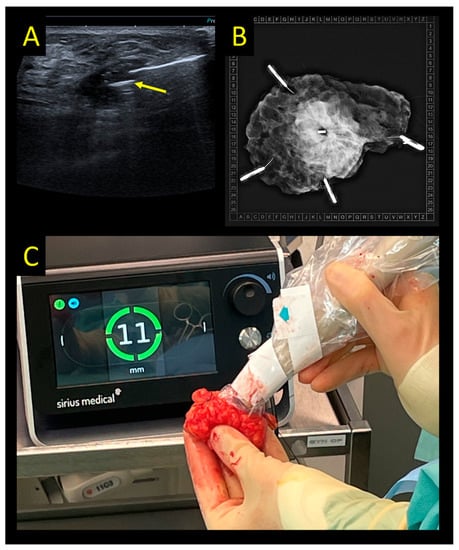 - Somasundaram, S.K.; Potter, S.; Elgammal, S.; Maxwell, A.J.; Sami, A.S.; Down, S.K.; Dave, R.V.; Harvey, J. Impalpable breast lesion localisation, a logistical challenge: Results of the UK iBRA-NET national practice questionnaire. Breast Cancer Res. Treat. 2021, 185, 13–20. [Google Scholar] [CrossRef] [PubMed]