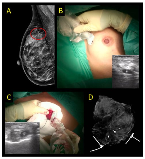 - Hayes, M.K. Update on Preoperative Breast Localization. Radiol. Clin. North Am. 2017, 55, 591–603. [Google Scholar] [CrossRef] [PubMed]